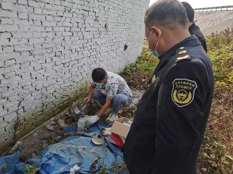 2022年10月17日,新乡市生态环境局接群众信访举报,反映“辉县市某镇有一电镀锌加工厂,每天不定时生产,产生难闻气味,污水排放不合理”的问题后,即刻安排支队执法人员根据举报线索开展摸排,及时锁定可疑点位,并联合当地政府进行现场调查。